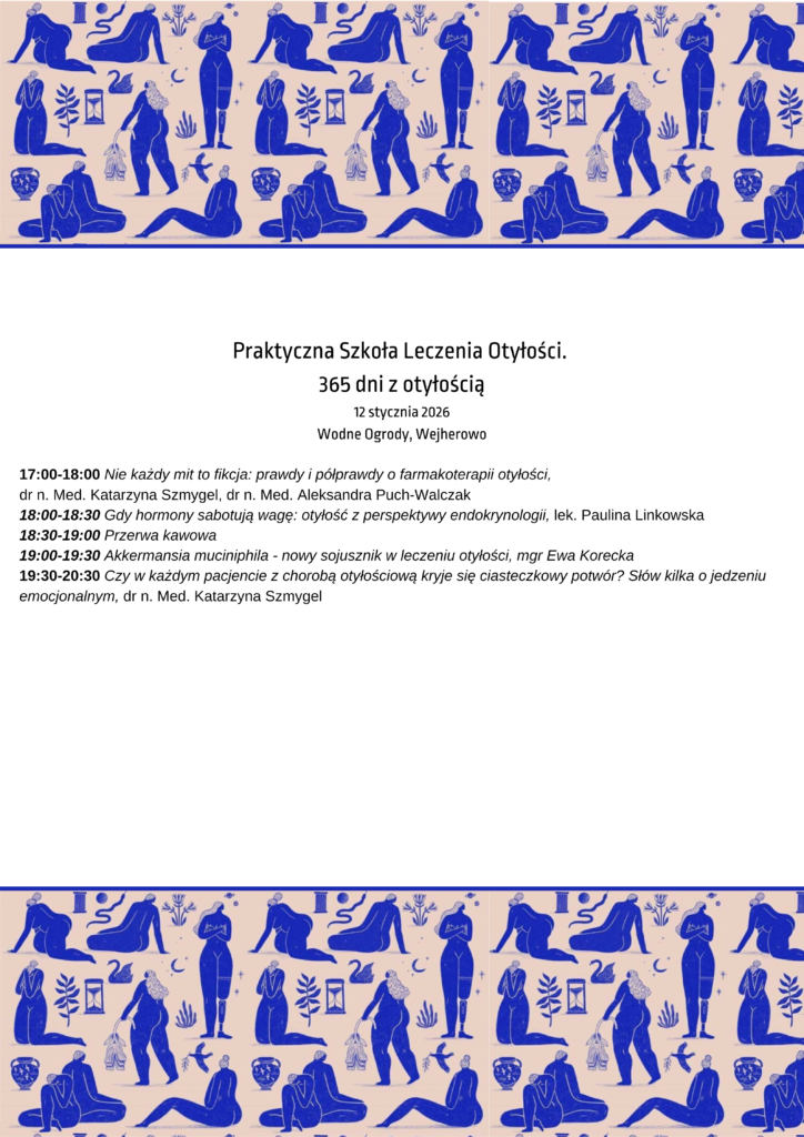 365 dni – właśnie taką część roku otyłość towarzyszy nam i naszym pacjentom. Zapraszamy Was na Szkołę Praktycznego Leczenia Otyłości, gdzie chcemy podjąć problem otyłości w oparciu o nasze doświadczenie z pracy z pacjentem chorującym na otyłość. Z punktu widzenia praktyka chcemy poruszać zagadnienia, które spotykamy w codziennej praktyce zarówno przy rozpoczynaniu, jak i kontynuowaniu terapii. Mamy nadzieję, że pomoże to Państwu w codziennej praktyce klinicznej.